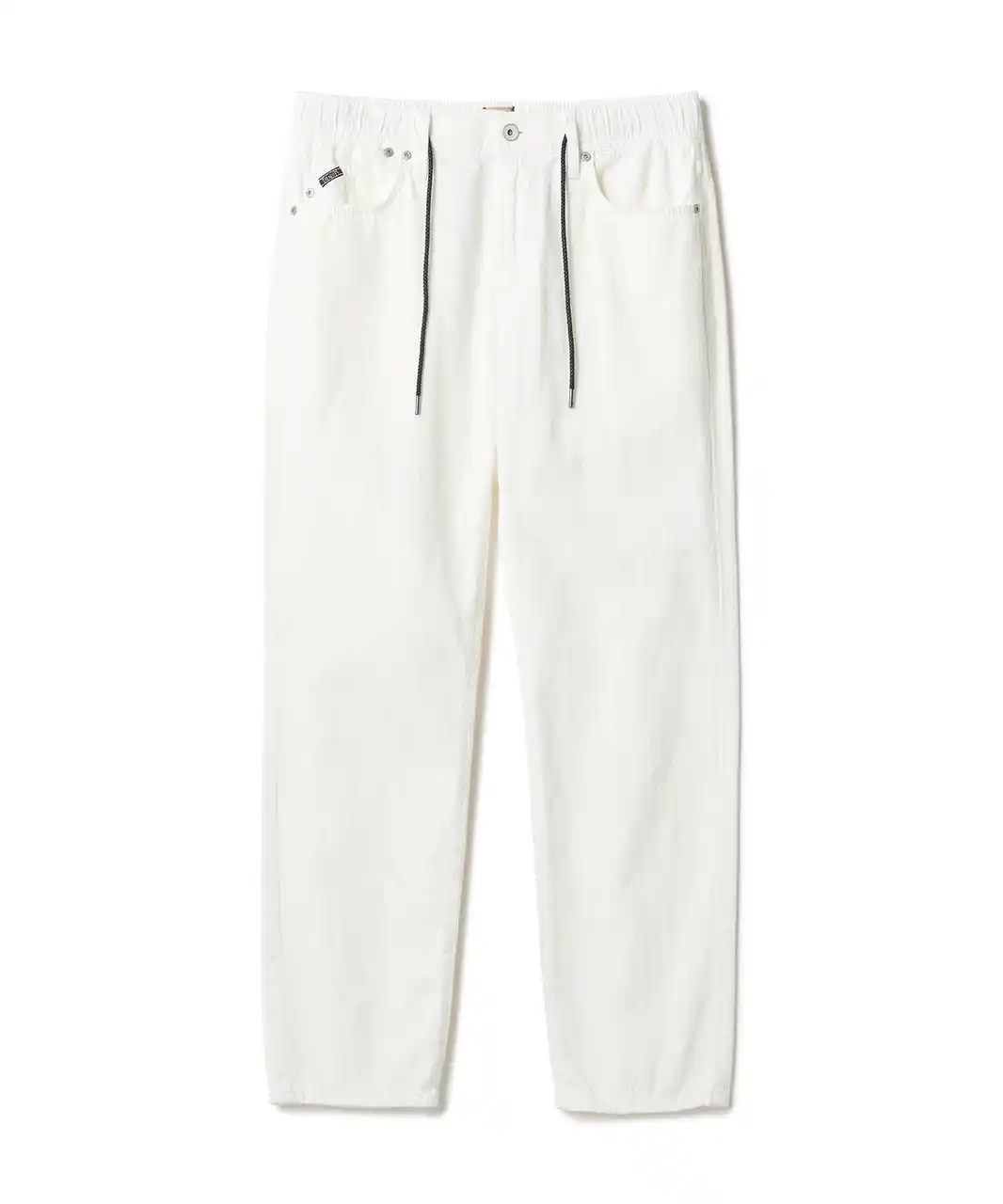 | また、カラー展開においてはインラインにはないブルー・ブラックを採用し、本別注ならではのラインナップを構成しています。さらに、ウエストには編み込みレザー風のドローコードを取り入れ、カジュアルな中にも上質さを感じさせるディテールに仕上げました。このドローコードは内側に収納することも可能で、スタイリングに応じたアレンジが楽しめます。 | ||||||||||||||