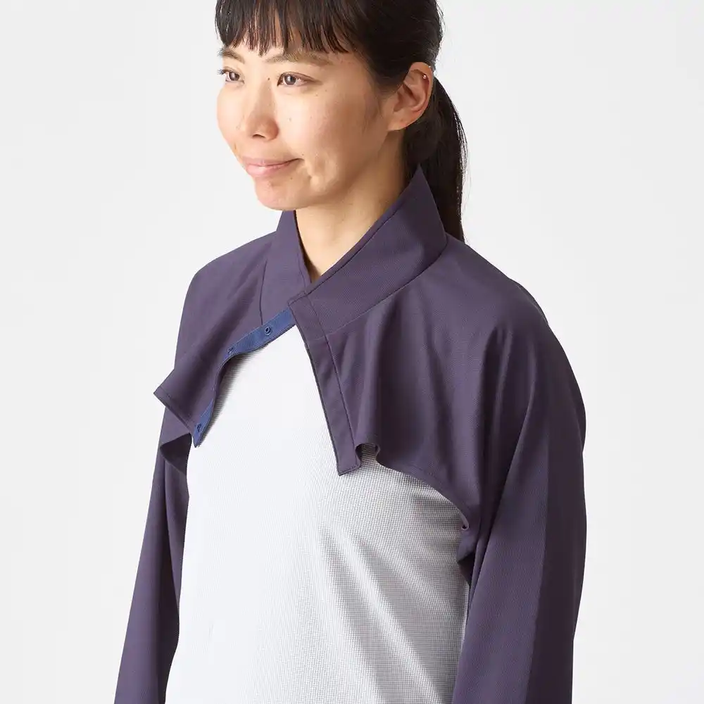 Tシャツの上からサッと着られて、腕や首回りをカバーできます。ザックを背負ったままでも着用が可能です。背中が開いているので着重ねる面積が狭く、真夏でも涼しく着用できます。 |