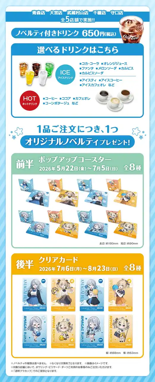 ※カラオケ未併設店舗5店舗ではコラボメニュー限定ノベルティ付きドリンクを販売いたします。 |