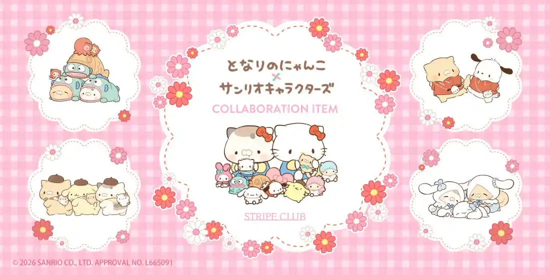株式会社ストライプインターナショナル(本社:岡山県岡山市、代表取締役社長:川部将士)が展開する公式WEBストア「STRIPE CLUB」は、株式会社サンリオが運営する「Charaforio(キャラフォリオ)」で昨年開催された「サンリオキャラクターズコラボクリエイター発掘コンテスト」にて最優秀賞を受賞したイラストレーター・ぽちさんが手掛ける人気シリーズ「となりのにゃんこ」とのコラボレーションしたコレクションを、2026年4月27日(月)18時より予約販売いたします。 |