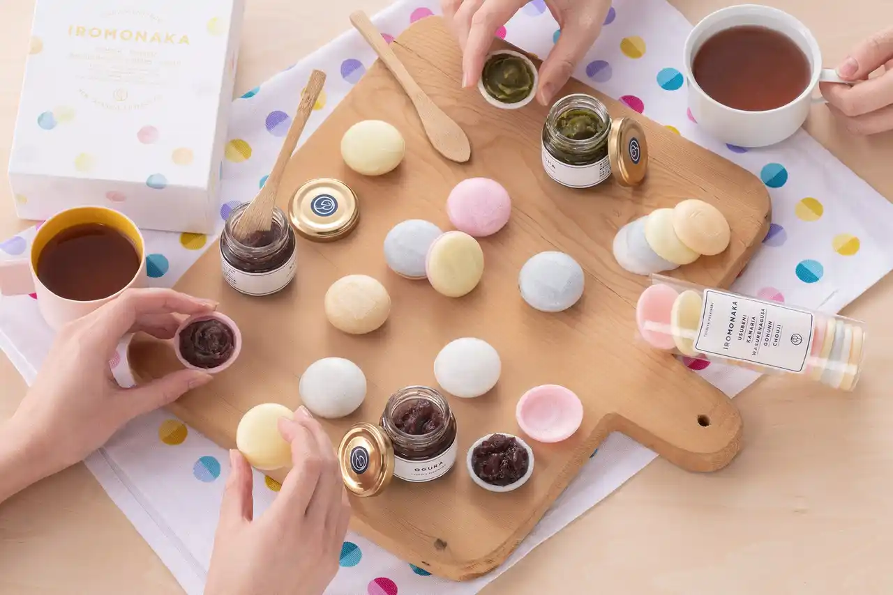マカロンみたいにころんと可愛い、お取り寄せギフトでも大人気のお手づくり最中セット「IROMONAKA(いろもなか)」。楽しく、かわいく、SNS映えもばっちりな一品をかわいい水彩風ドット柄パッケージで包みました。オンラインショップ限定の、母の日専用掛紙をお選びいただけます。 |