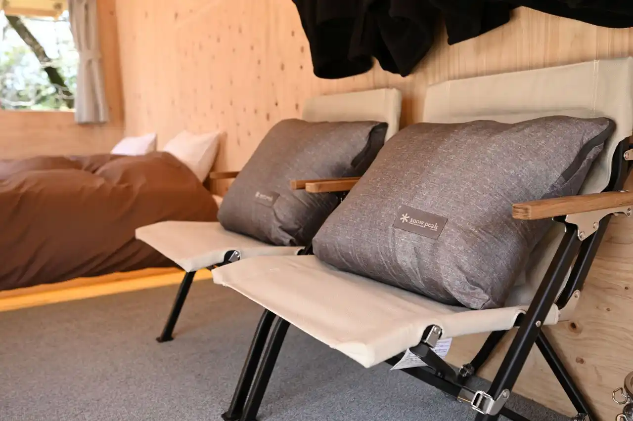 隣接する広々としたプライベートデッキは、自然と調和する開放感あふれる空間。読書やご家族・ご友人との語らいなど、思い思いの時間をゆったりとお過ごしいただけます。電源設備も整っており、スマートフォンの充電なども快適にご利用いただけます。室内には冷暖房を完備しており、季節を問わず安心してご滞在いただけます。また、朝の澄んだ空気の中で楽しむ「本格コーヒー体験」もご用意。スノーピークの製品を使用し、自ら豆を挽き、丁寧に淹れる一杯は、ウッドデッキでくつろぎながら味わう特別な朝を演出します。日常の喧騒から離れ、心ほどけるひと時をお楽しみください。 |