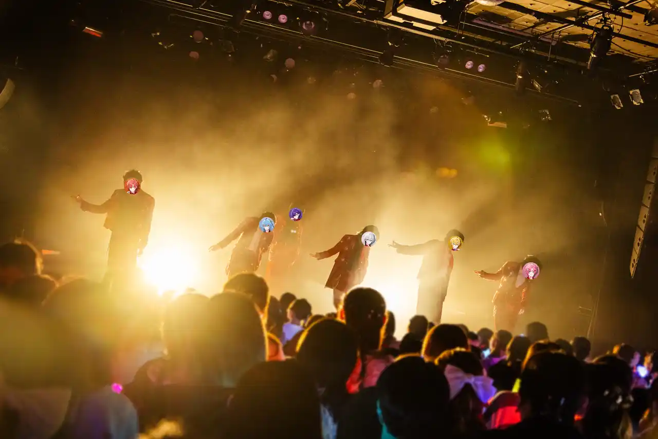 「Street Step」(原曲:すにすて - SneakerStep)では、軽やかなステップでそれまでとは一変した空気感を演出。「NOROSHI」(原曲:めておら - Meteorites -)では、フレッシュなエネルギーで力強い楽曲に果敢に挑む。重厚なサウンドが魅力の「BOOGIE DOWN」(原曲:騎士X - Knight X -)ではクールな表情を垣間見せ、6人のボーカルも徐々に伸びやかに響いていく。色気のある表情で魅せた「NUDIE...」(原曲:AMPTAKxCOLORS)では、客席との一体感をさらに深めていった。 |