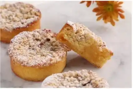 ふんわりと焼き上げた生地の中に、柚子とマンダリンオレンジの爽やかなピュレを忍ばせました。バターのコクが香るサクサクとしたヘーゼルナッツクランブルをのせて仕上げた、軽やかで清涼感のある焼き菓子です。 |