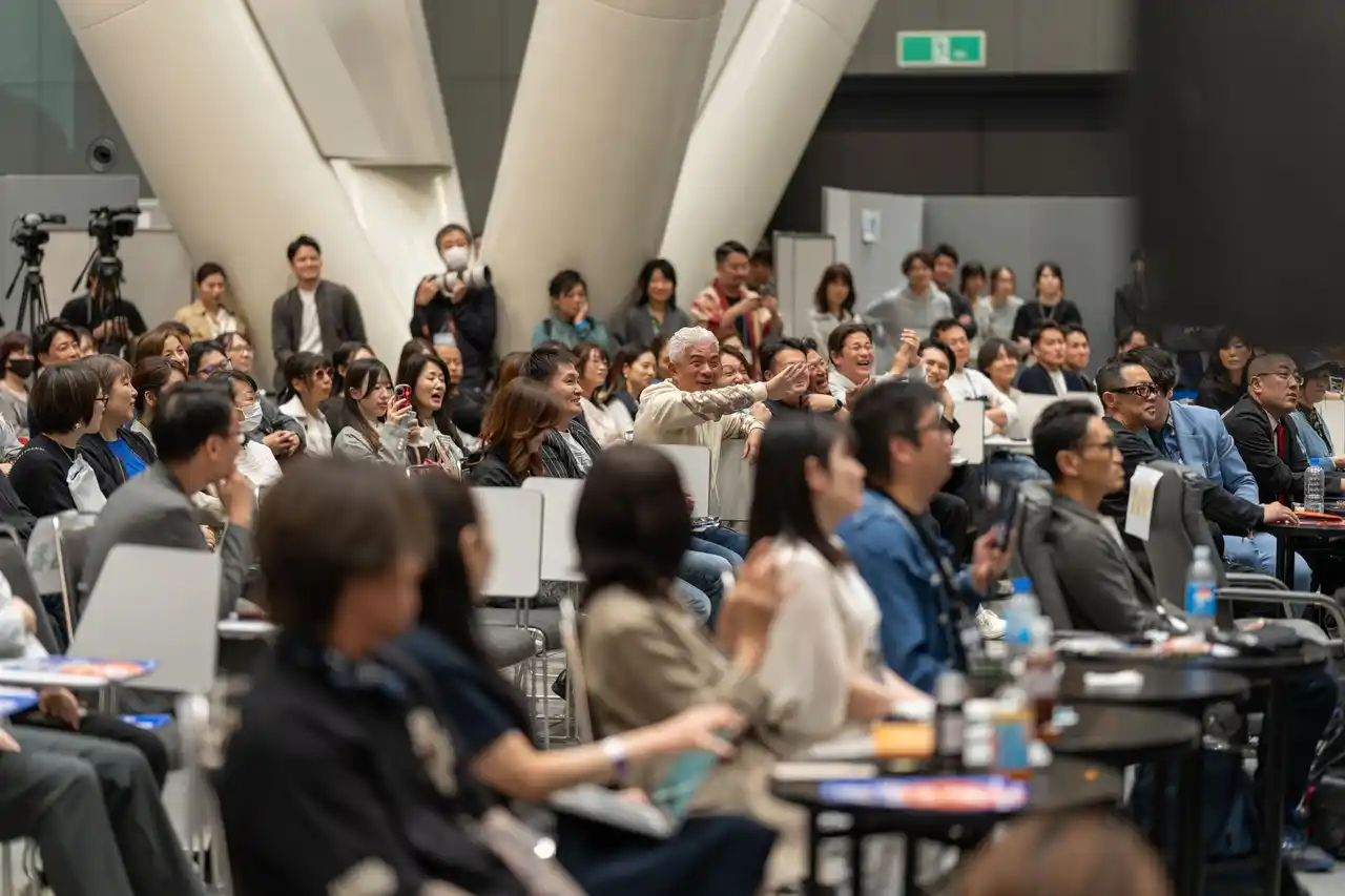 ホールE2の対談エリアで実施された目玉企画「令和の虎 VS REAL VALUE」では客席が満員となり、立ち見も出る盛況となりました。林尚弘、ドラゴン細井、桑田龍征の令和の虎メンバーに加え、REAL VALUEより堀江貴文氏、溝口勇児氏が参戦。番組ファン待望の顔合わせによる対談・鼎談で、会場は大きな熱気に包まれました。 |