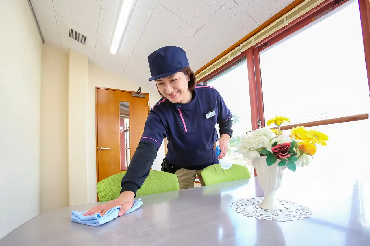 その一方で、これまでの60年間の歩みを振り返ると、実感するのは「仕事の主役はあくまで人であること」。病院内の清掃業務にあたっていた社員が、患者さまへ元気を与えたという温かなエピソードは、今も遠藤氏の心に誇らしく残っているそうです。 |