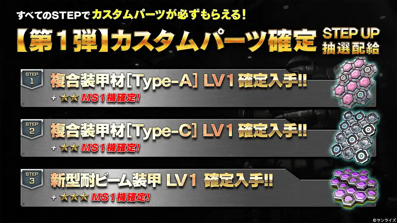 さらに「カスタムパーツ確定STEP UP抽選配給」を2週連続で開催予定です。 |
