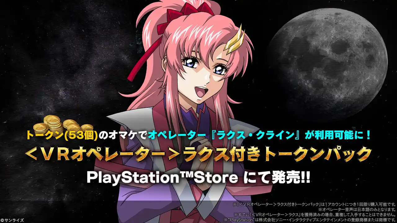 また5月7日の「フリーダムガンダム」実装に先駆け、<VRオペレーター>ラクス付きトークンパックと<VRオペレーター>ミーア付きトークンパックの再販売を4月30日より実施予定ですので、まだ獲得していないパイロットの皆様はぜひ入手してください。 |