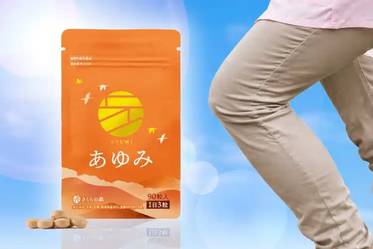 「あゆみ」は、立ち上がりや階段の昇り降り、日々の歩行など、年齢とともに膝まわりの違和感が気になりはじめた方の毎日に寄り添う機能性表示食品です。 |