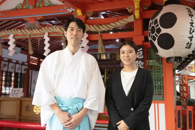 (左)服部天神宮の加藤さま、(右)企画担当 中村 |