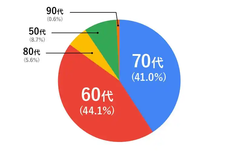 応募者の年代は、60代(71名)、70代(66名)が全体の約8割を占めました。 |