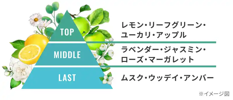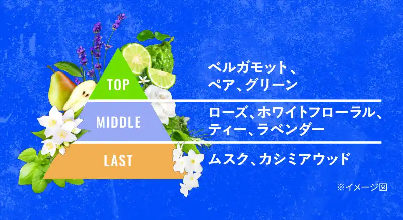 汗ばむ嫌な頭皮臭をライトフローラルの香りでマスキング。日常使いしやすい香りです。 |
