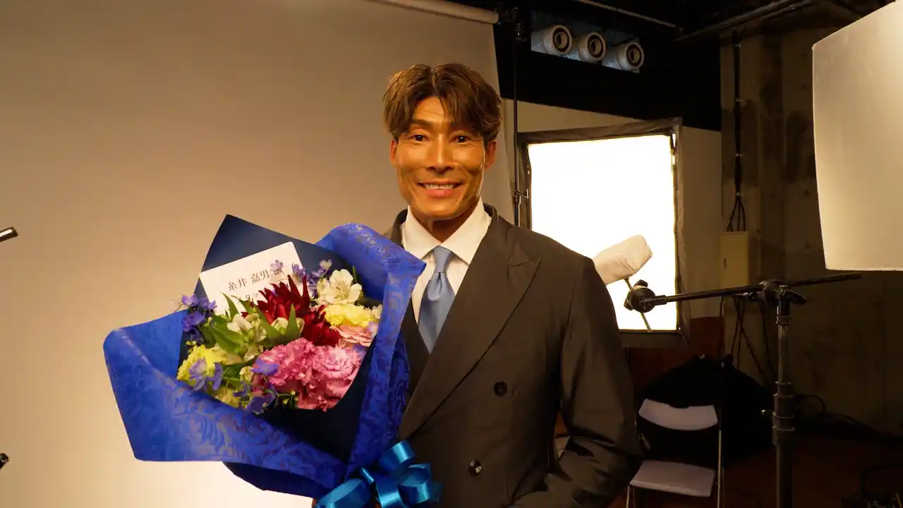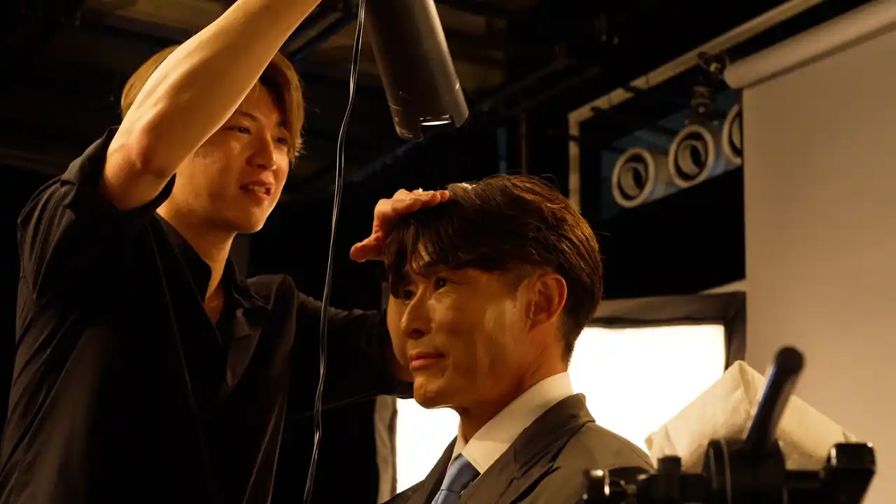 最後のスチール撮影では、本物の氷を頭に乗せて撮影。人生初の“氷乗せ”に糸井さんも興味津々の様子。「冷たいな(笑)」とポツリ呟きながらも撮影が続き、全ての撮影が終了。クランクアップ後にはスタッフからサプライズで花束が贈られ、温かな拍手の中で撮影は締めくくられました。 |