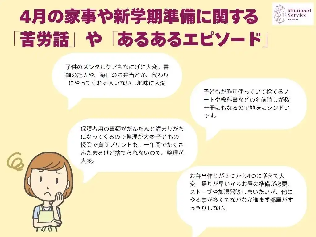 【新年度の家事負担に関する意識調査】ミニメイド・サービス株式会社 調べ 「新年度の苦労話やあるあるエピソード」 |