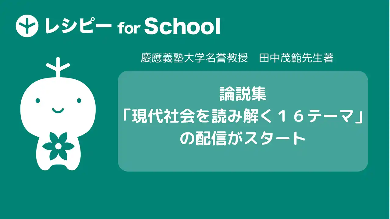 株式会社ポリグロッツ(本社:東京都新宿区、代表取締役:山口隼也)は、教育機関向け英語学習プラットフォーム『レシピー for School』で、慶應義塾大学名誉教授・田中茂範先生の制作による論説集「現代社会を読み解く 16テーマ」の配信を開始しました。 |