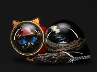《黒漆星界浮遊猫》 2026年(58.5×25×65cm、漆、銀、金、あわびほか)撮影:表恒匡 |