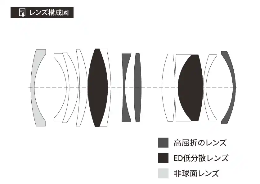・EDレンズ2枚、高屈折率レンズ3枚、非球面レンズ1枚を採用 |