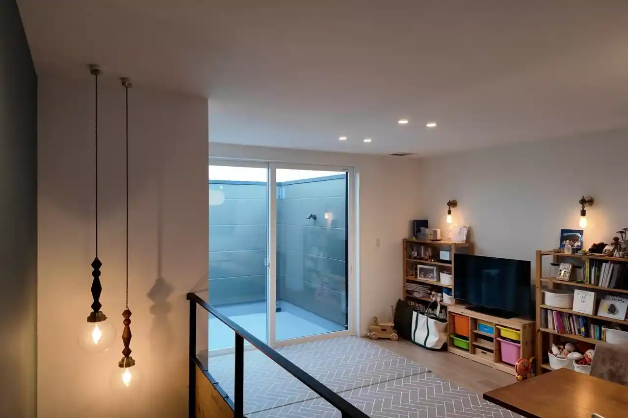 家族が自然と集まる仕掛けを散りばめました。広々とした玄関土間は第二のリビングのように、リビングのスタディスペースでは親子が並んで過ごせます。子供部屋をあえてコンパクトな3畳にしたのも、個室にこもらず、いつも家族の気配を感じてほしいから。そんな想いが詰まった、素敵なお家が完成しました。 |