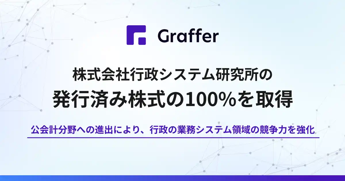 株式会社グラファー(本社:東京都渋谷区、代表取締役:石井大地、以下「グラファー」)は、2026年4月27日付で、株式会社行政システム研究所(本社:北海道札幌市、代表取締役:城克幸、以下「行政システム研究所」)の発行済み株式の100%を取得しました。 |