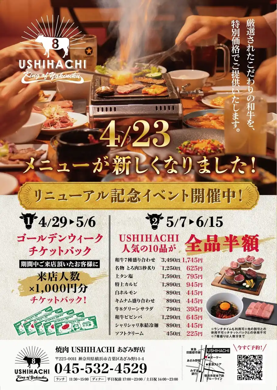 「焼肉USHIHACHIあざみ野店」では『リニューアル記念イベント』を開催! |