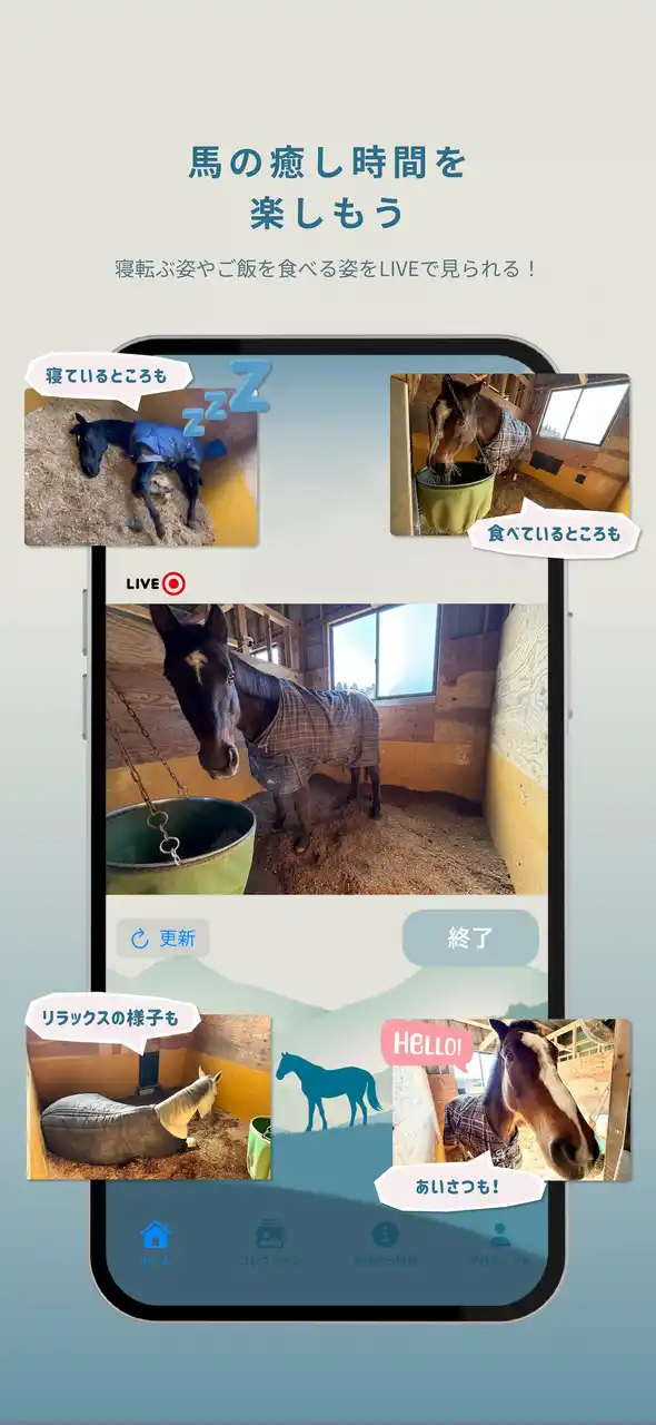 ・馬のリアルタイム映像をスマートフォンでいつでも視聴可能 |