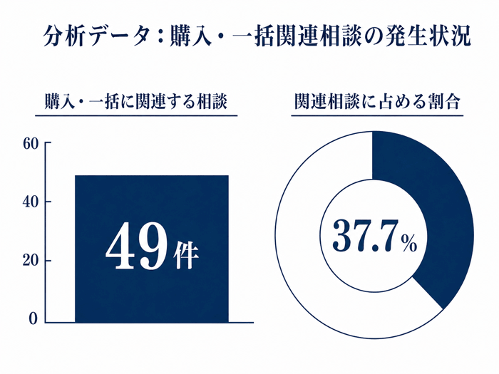 | その結果、購入・一括に関連する相談は49件、関連相談の37.7%を占め、サブスク型・月額型サービスが広がる中でも、電話設備では「総額でいくらか」を重視する傾向が確認されました。 | |||