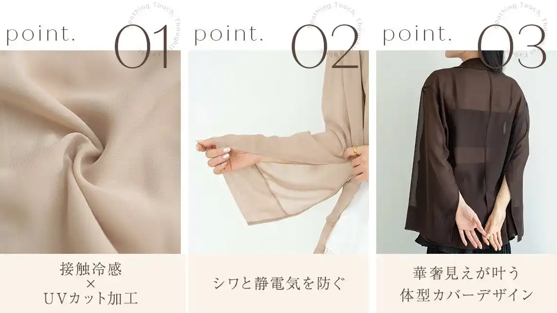 | “ひんやり”と“華奢見え”を両立。接触冷感シアージャケットの魅力 | ||||||||||||