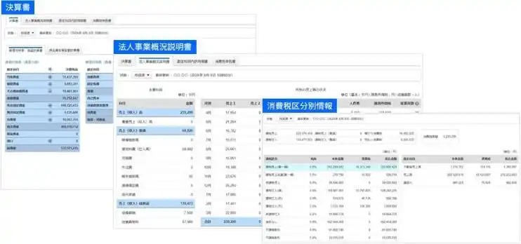 法人税申告に必要な、損益計算書・貸借対照表・製造原価報告書といった決算書情報だけでなく、法人事業概況書や勘定科目内訳明細書情報なども連携します。また、2026年1月の連携と同様、消費税申告に必要な消費税区分別の取引金額、消費税額もfreee税区分に合わせて自動集計され、調整することなくスムーズに連携することが可能です。設定は翌年にも引き継がれるため、毎年業務を効率化することが可能です。 |