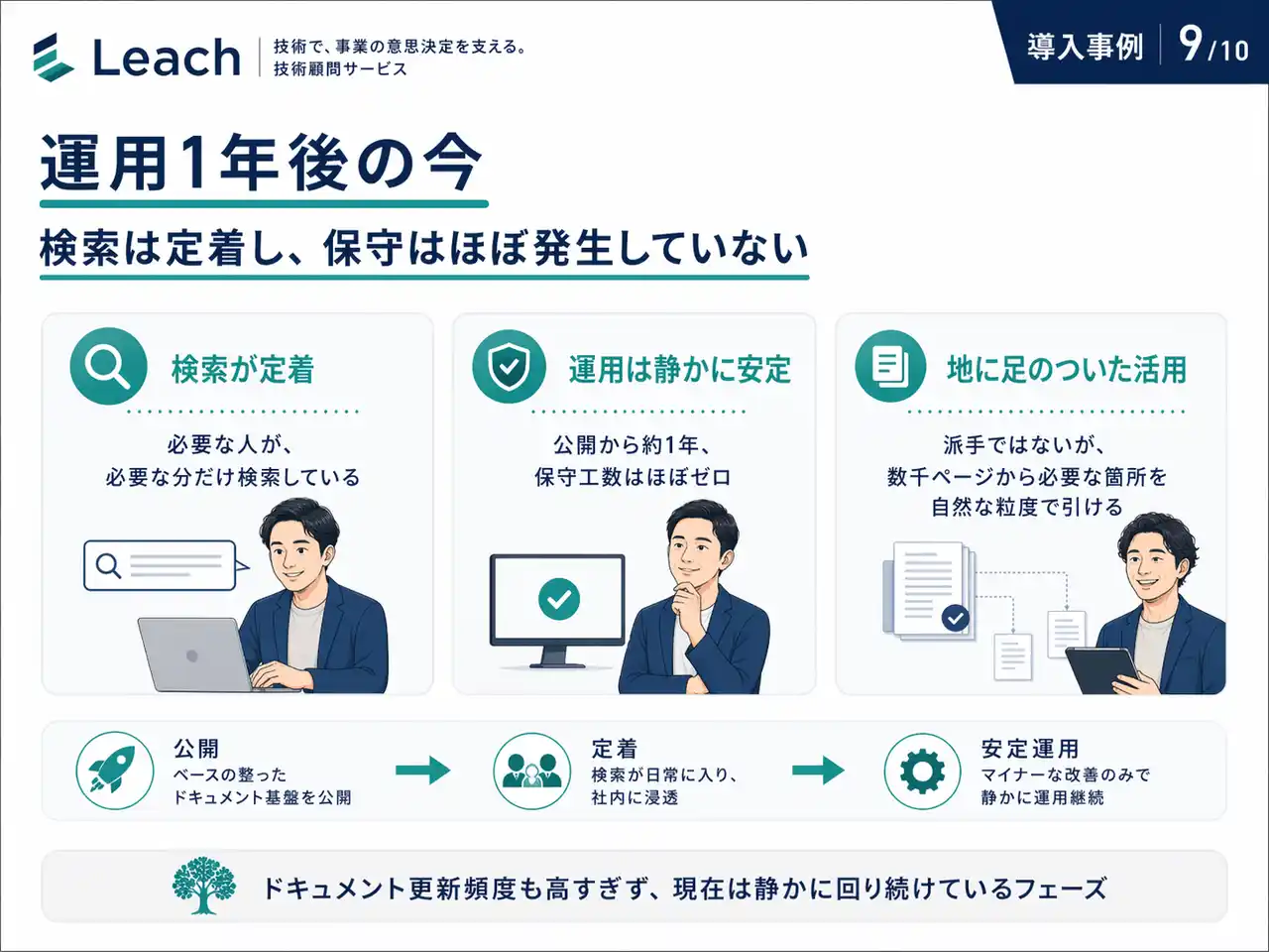5. 運用1年後の今 ── 検索は定着し、保守はほぼ発生していない |