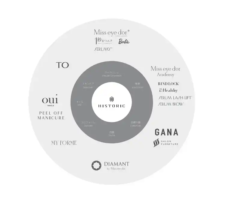 アイラッシュブランド「Miss eye d’or(ミスアイドール)」として業界を牽引してきた実績を基盤に、HISTORICはネイル・スキンケア・ファニチュアへと領域を拡張。 |