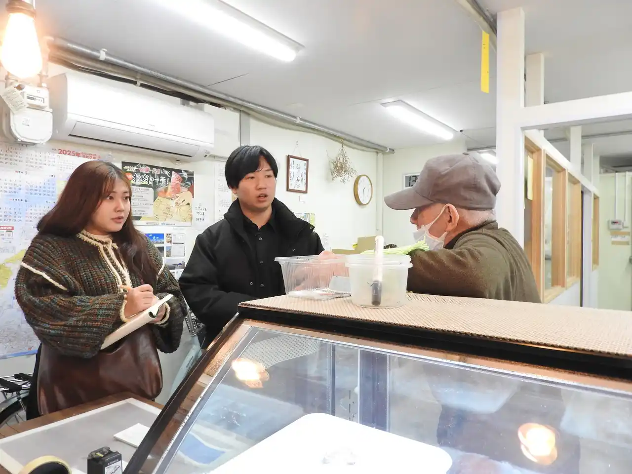 当初、学生たちは旦過市場に対して「市場通りが暗くて少し怖い」「常連さんが行く場所」といった印象を抱いていました。しかし、取材を重ねるうちに店主と顔馴染みとなり、今では市場を歩くだけで声をかけられる存在に。そこには、人と人との距離が自然と近づいていく、旦過ならではの「人情」があります。 |