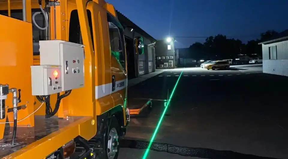 今回、推奨技術に選定された「G-スクライト工法」(NETIS登録番号:HK-240021-VE)は、光のラインを路面に投影し、道路に線を引くべき位置を瞬時に可視化する技術です。本技術の活用により、従来は人力で行っていた下書き作業が不要となるため、工程を短縮し、経済性、安全性、施工性を向上させます。パターンライトは、その工法の中でも路面に約100m先まで明瞭な線状の光を投影する装置で、同工法を支える重要な製品です。「推奨技術」に選定されたことで、パターンライトを使用した本工法は、公共工事における活用拡大が期待されます。 |