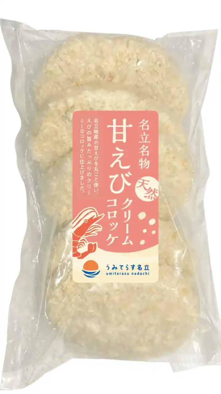 本商品は、道の駅うみてらす名立に隣接する名立漁港で水揚げされた甘えびを使用しています。 真っ赤な殻とぷりぷりとした食感、そして濃厚でとろけるような甘みが特長の甘えびを、丸ごとペーストにしてホワイトソースと合わせることで、甘えびの旨味を余すことなく引き出した、クリーミーなコロッケに仕上げました。 |
