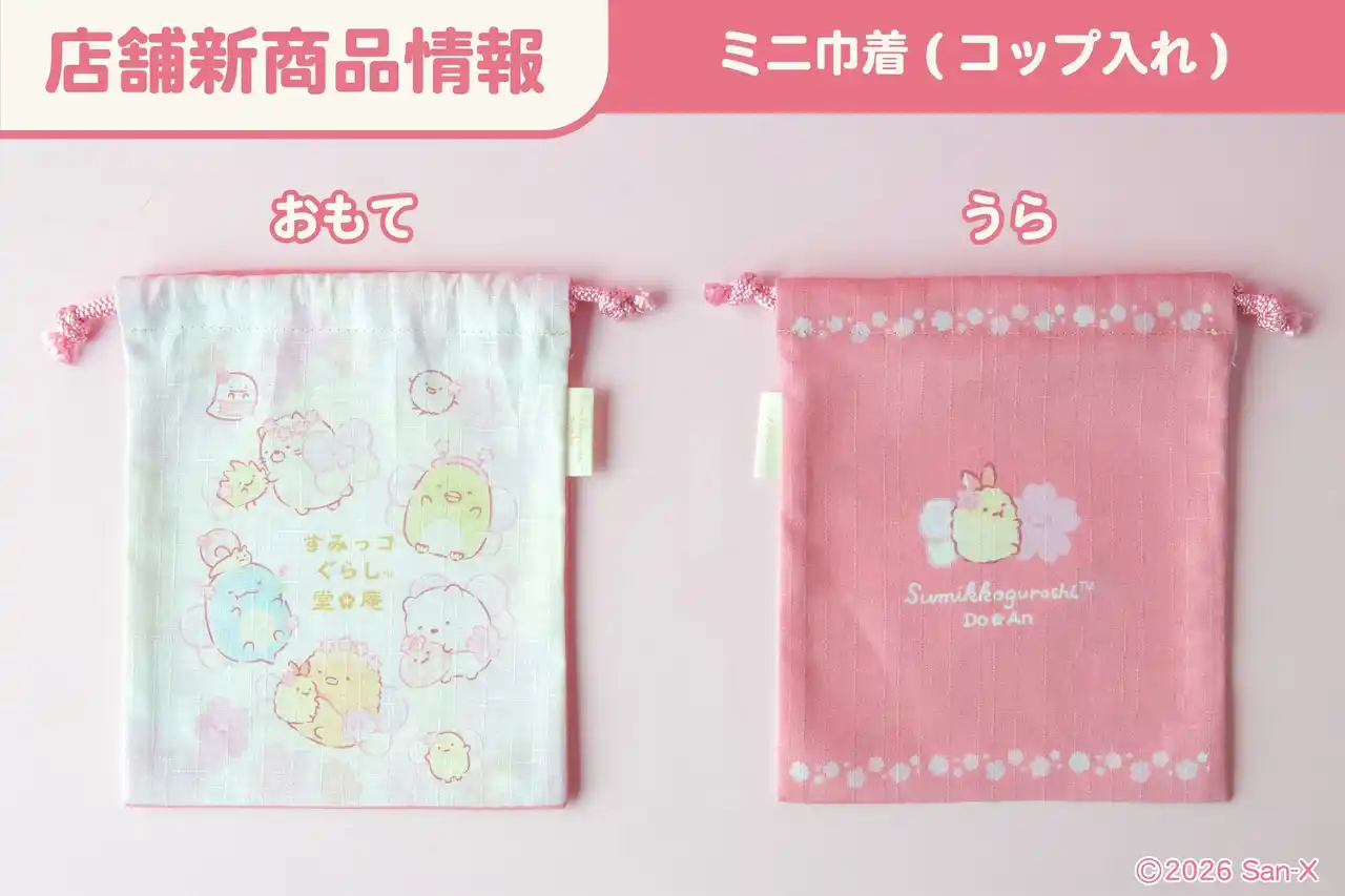 4月30日(木)より発売予定です! ■【新商品】すみっコぐらし堂&庵共通限定商品「ミニ巾着(コップ入れ)」 |