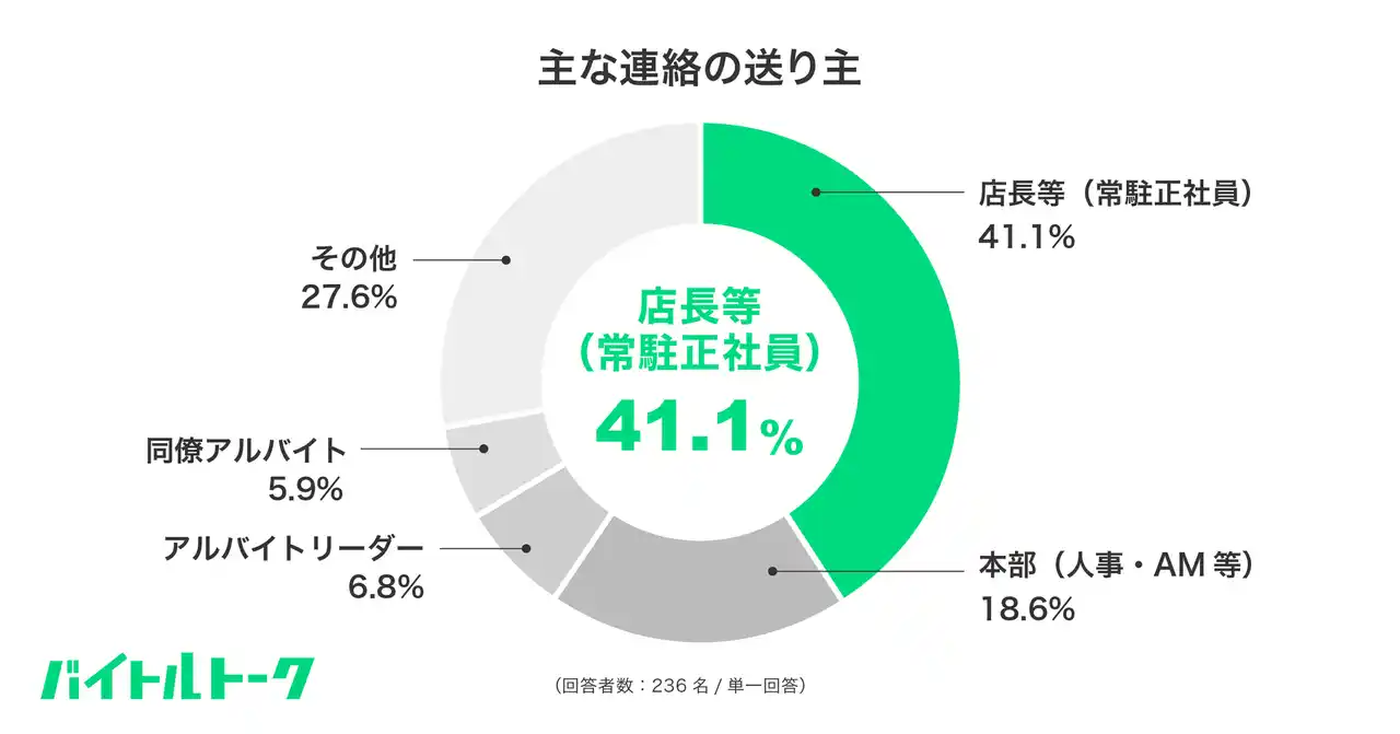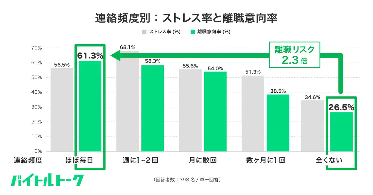 連絡元として最も多い店舗管理者からの連絡に対し、78.4%がストレスを感じている実態が判明 |