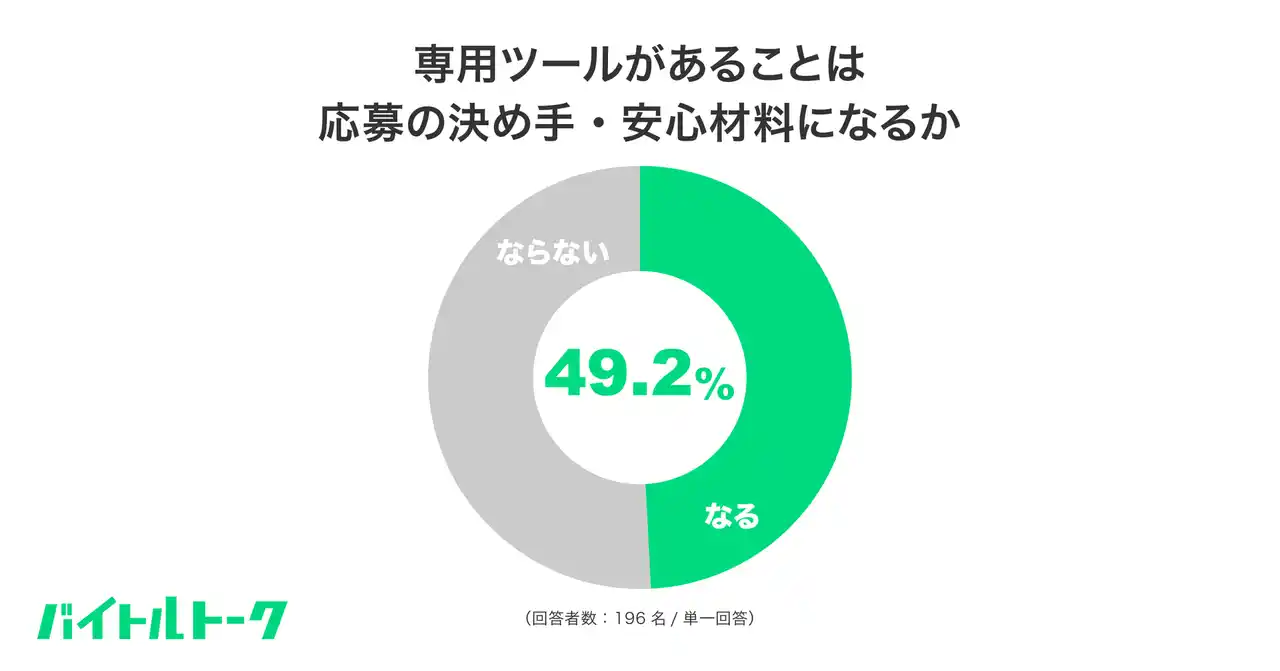 約半数の49.2%が私用SNSを使用しない専用チャットツールの導入を応募の決め手や安心材料として評価 |