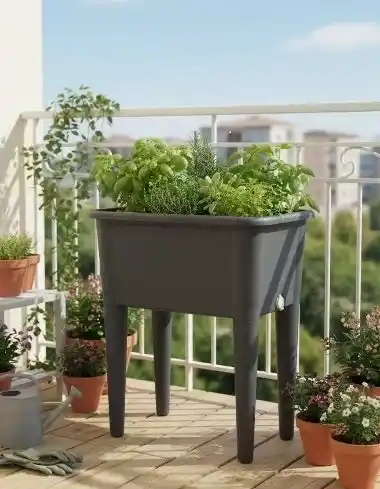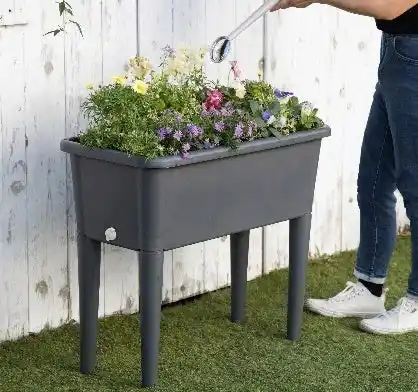 本製品の最大の魅力は、脚付き構造にすることで「身体への優しさ」を実現した点にあります。従来のプランターは、植え付けや水やりのたびに屈んだり深くしゃがみ込んだりする必要があり、ひざや腰への負担が課題となっていました。しかし、本製品は作業位置が高いため、立ったまま、あるいは椅子に座ったままの楽な姿勢でお手入れが可能です。これにより、シニア世代の方はもちろん、長時間ガーデニングを楽しみたい方も、体へのストレスを気にすることなく植物との触れ合いに集中できます。 |