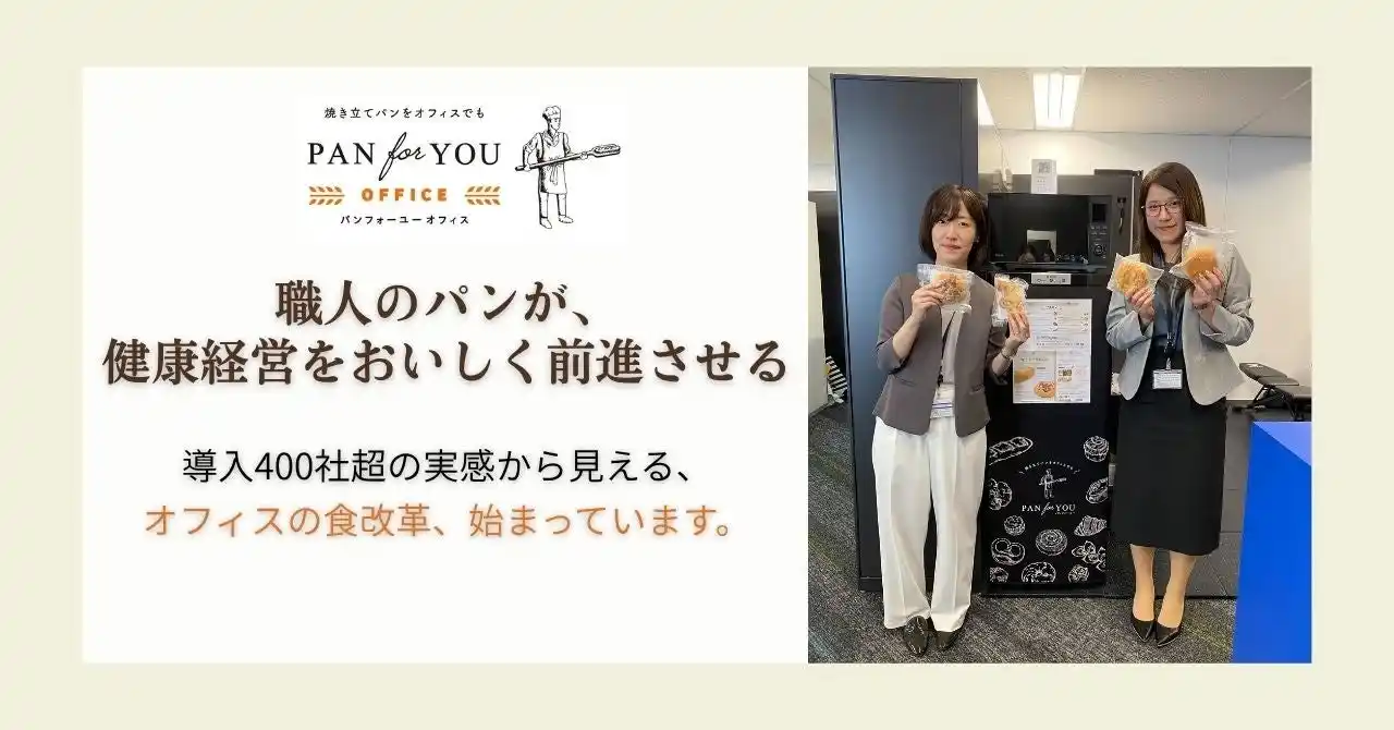 地域のパン屋と企業をつなぐ株式会社パンフォーユー(本社:群馬県桐生市、代表取締役:矢野健太、以下「パンフォーユー」)が提供する置き型社食サービス「パンフォーユーオフィス(https://office.panforyou.jp/)」は、全国400社超の導入実績を通じて、従業員の食環境整備という健康経営の重要課題に応えてきました。 健康経営優良法人認定の評価項目として注目される「食環境の整備」や「従業員の食生活改善に向けた取り組み」とも親和性が高く、認定取得・維持を目指す企業からの関心が高まっています。惣菜パン・ベーグル・おやつパンなど、朝食から小腹満たしまで気分やシーンに合わせて選べる豊富なラインナップで、従業員の毎日に自然な食の選択肢を届ける同サービスの現場の変化と手応えをご紹介します。 |