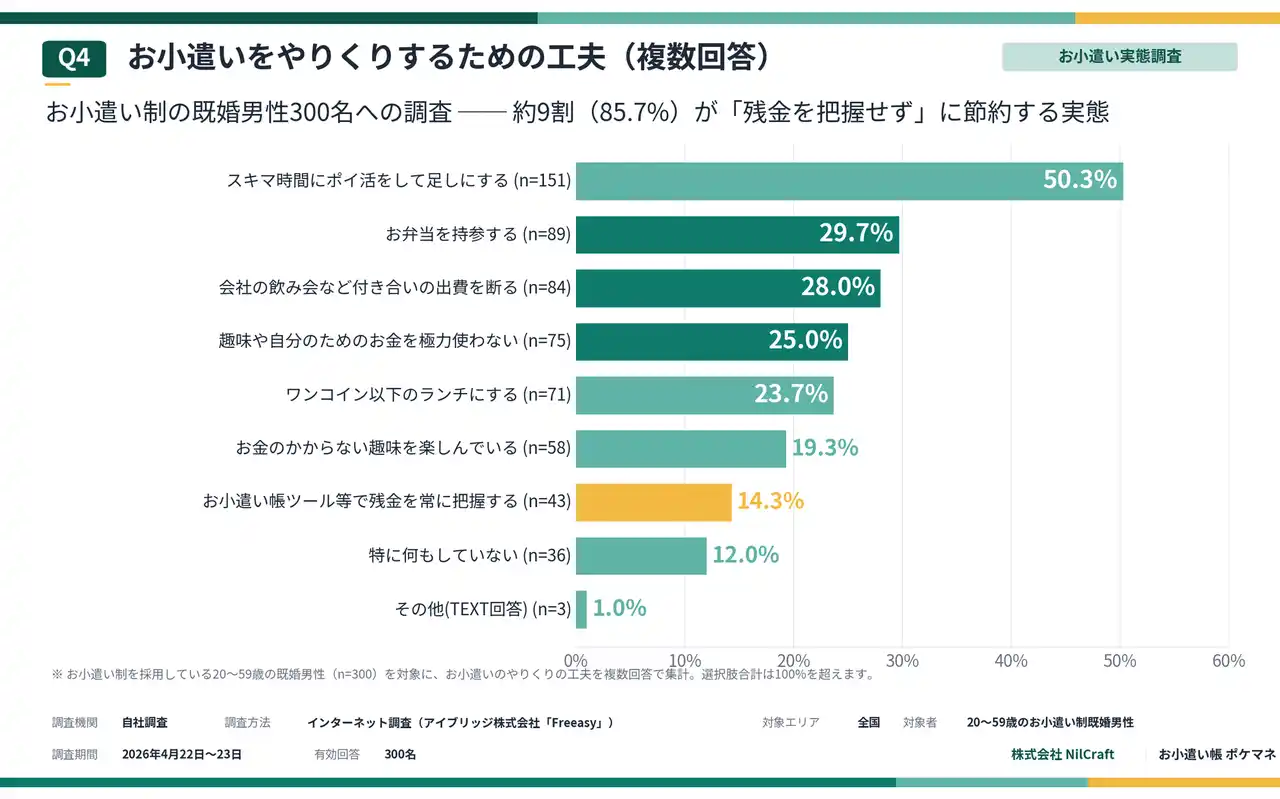 Q4. やりくりの工夫──「残金把握」はわずか14.3%にとどまる |
