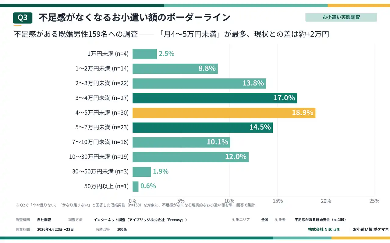 Q3. 不足感がなくなるボーダーライン──最多は「月4~5万円未満」 |