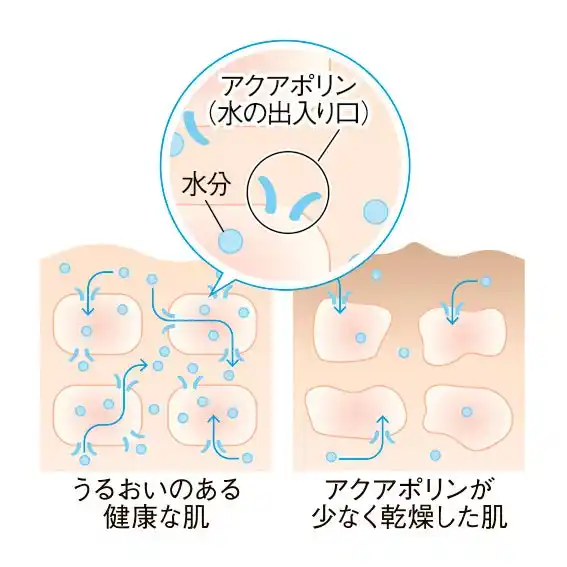 水分を蓄える「潤いの道」が不足していると、潤い成分を与えても肌へと届かないため、まずは「潤いの道」づくりから。 |