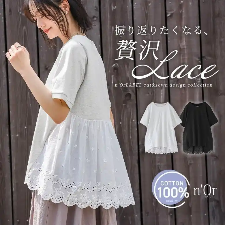 | 周りと一歩差をつけるなら、異なる表情を組み合わせた「異素材ミックス」が鍵。幾何学柄のレース切り替えや、ほんのり透ける袖シアー、裾から覗く布帛デザインなど、一枚でレイヤード風の奥行きが生まれます。カジュアルな中にもモードで上品なニュアンスが漂い、手抜き感ゼロの装いに。質感のコントラストで、夏のスタイルを鮮やかに更新して。 | |||||||||