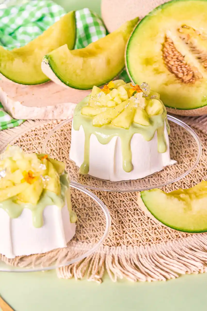 トップには、まるで花のようにあしらった国産マスクメロンと、エディブルフラワー、きらめくゼリーを添えて。見た目にも涼やかで、初夏の訪れを感じさせる一品です。ひとくち頬張れば、口いっぱいに広がるジューシーなメロンの甘み。甘さはありながらも軽やかで、最後まで心地よく楽しめる“大人のご褒美シフォン”に仕上がっています。 |
