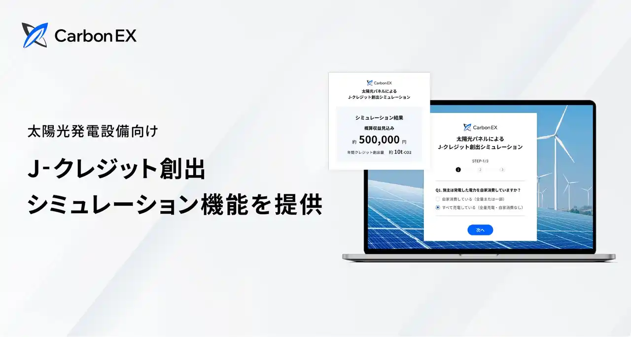 Carbon EX株式会社(本社:東京都港区、代表取締役:西和田浩平、竹田峻輔、以下「当社」)は、太陽光発電設備を対象とした「J-クレジット創出シミュレーション」を開発し、提供を開始しました。 |