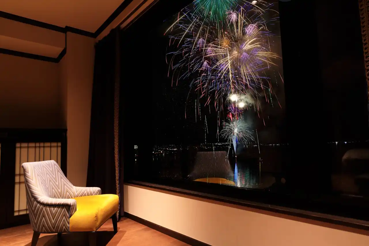 【期間限定】花火鑑賞プラン 夏の期間、毎日10分間打ち上がる諏訪湖の花火を諏訪湖一望の客室や徒歩1分の外からご覧いただけるプランです。目の前に打ち上がる約500発の迫力ある花火を堪能。夜空に広がる夏の風物詩を諏訪湖の景色と共にお愉しみください。今年の夏は湖畔に佇むしんゆで花火鑑賞旅をしませんか。 |