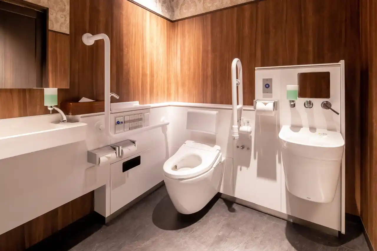 電動ベッドなどユニバーサルデザイン仕様の「美湖の雫」露天風呂付き客室スイートの一例 |