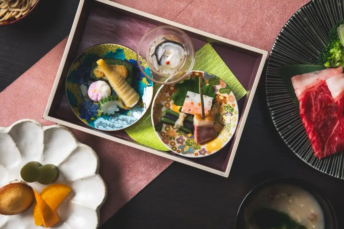 個室料亭で食す創作和会席「美湖膳」の一例 |