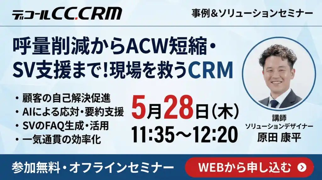 | ギグワークスクロスアイティ株式会社(本社:東京都港区、代表取締役社長:小島 正也、ギグワークス株式会社の子会社)は、2026年5月27日(水)・28日(木)に開催される「コールセンター/CRM デモ&コンファレンス 2026 in 大阪 (第19回)」のセミナーに登壇し、コールセンターの生産性向上と顧客体験(CX)を両立させる最新のデジタル基盤構築術を徹底解説します。 | |||||||||