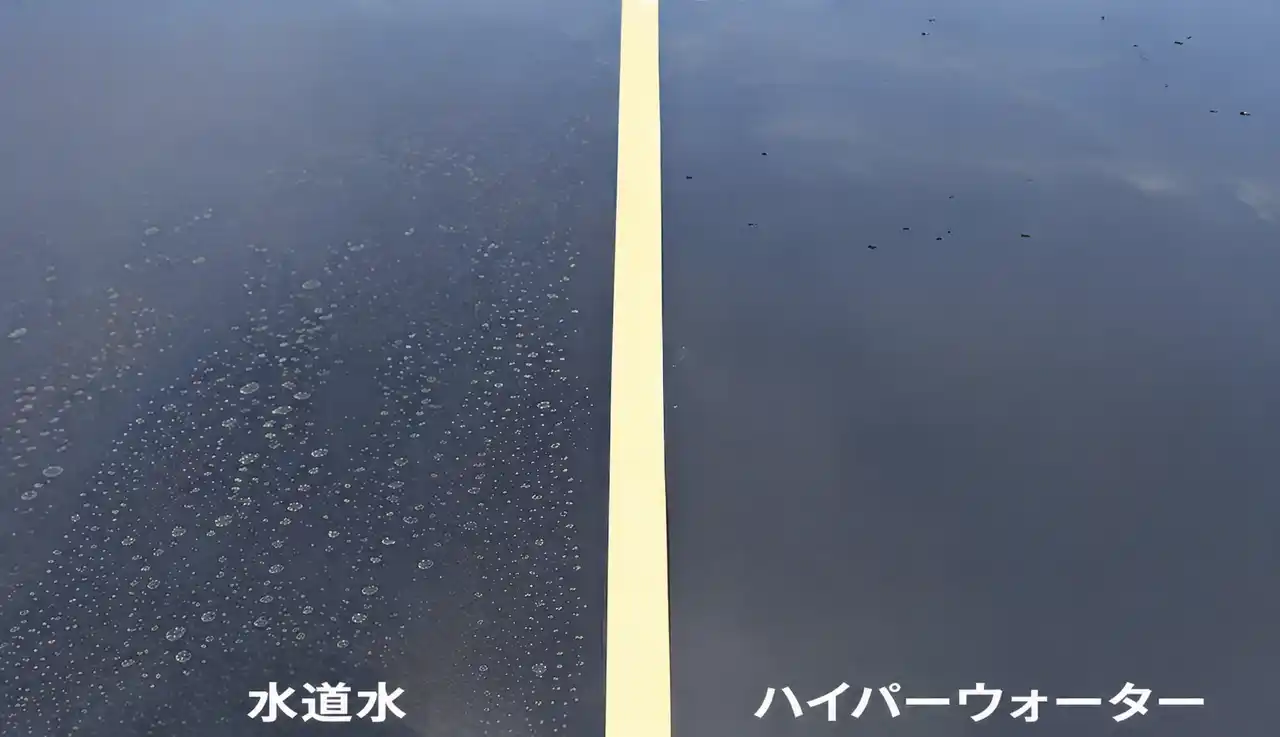 『HYPER WATER』は、不純物を極限まで除去した超純水を精製・使用することで水シミの発生を防ぎ、洗車後の拭き上げ作業を不要にする洗車専用超純水システムです。 |