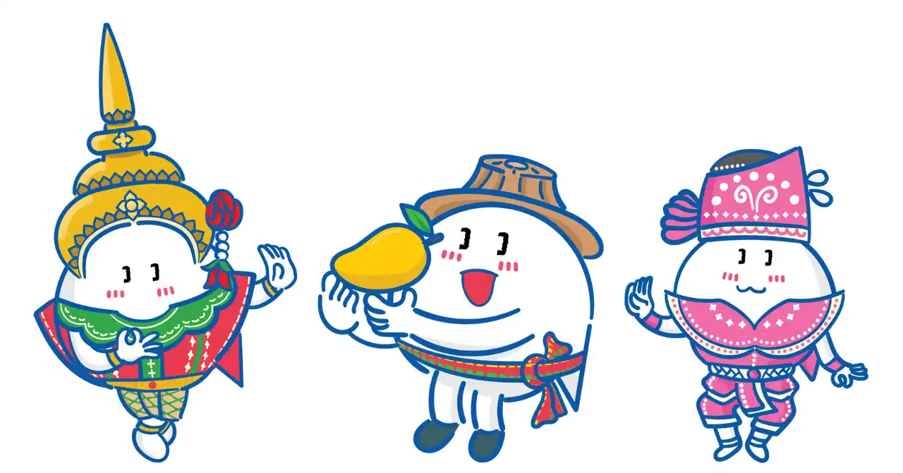 2025年から登場したタイフェスティバルのマスコットは、Thai Festival の文字「a」から生まれました。とんがったシルエットは「ピン留め」をモチーフにしていて、クリエイティブの新たなランドマークであることを伝えています。会場ゲートや大使館ブース前にマスコットのスタンドを用意していますので、お楽しみに。 |